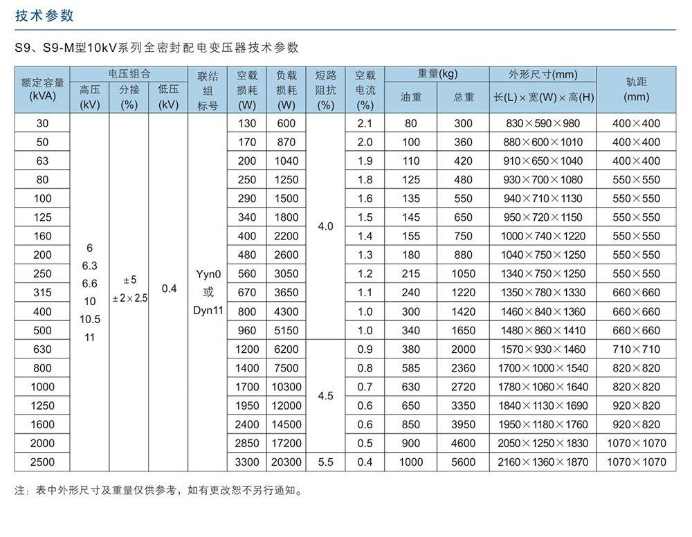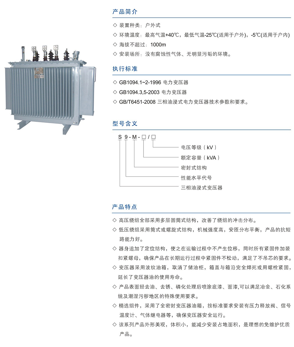 S9/S9-M型10KV系列全密封配电变压器