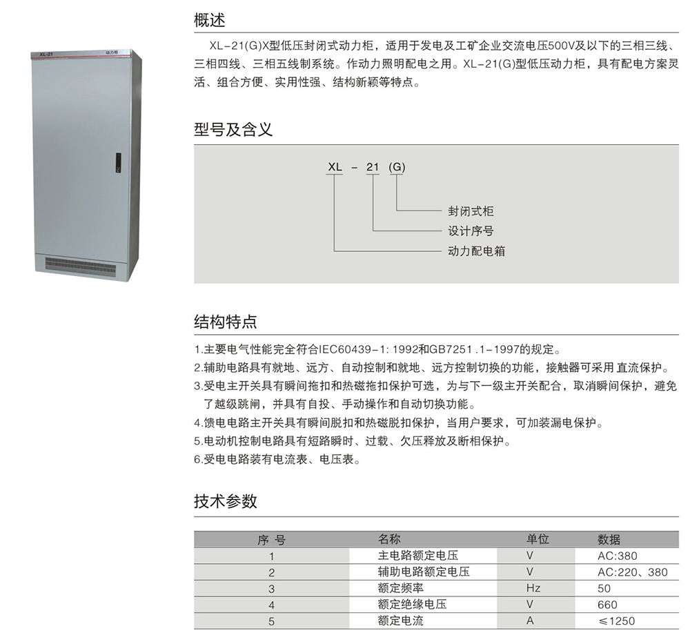 XL-21(G)X型低压封闭式动力柜