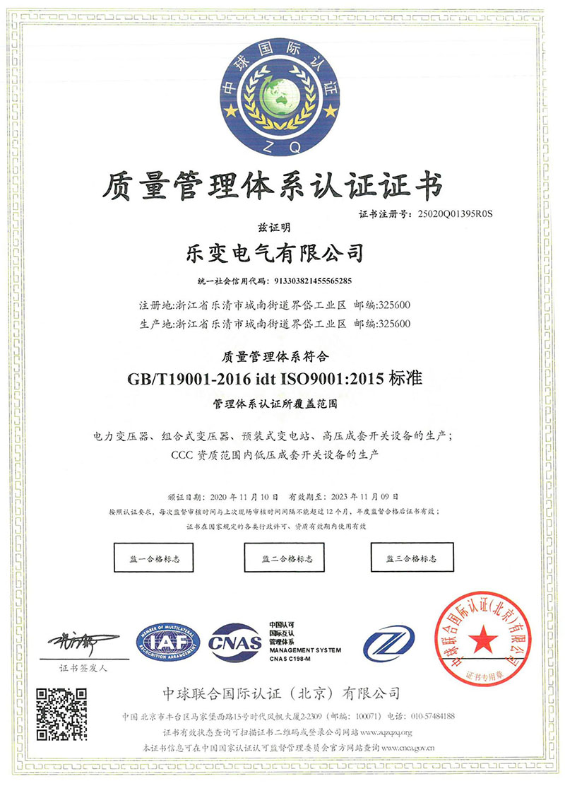 质量管理认证证书