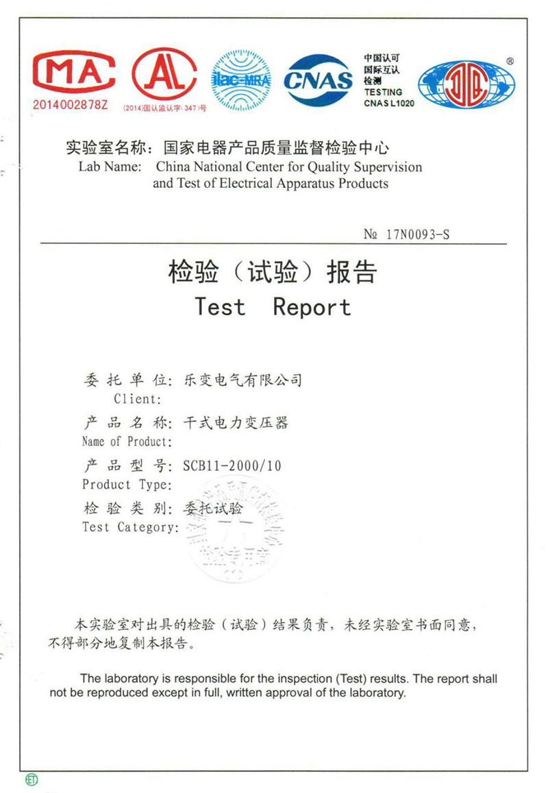 试验合格证书